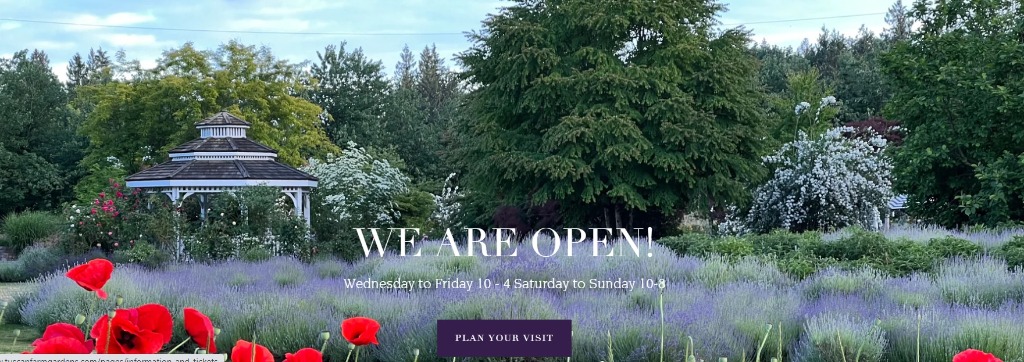 Abbotsford的Tuscan Farm Gardens 專門種植薰衣草,但在這裡也可以欣賞到成片的野花,池塘,噴泉和涼亭,所以被稱作是“農場花園”。他們的禮品店出售用農場裡種植的鮮花和草藥制作的手工產品,還提供薰衣草冰激凌和其他美食。