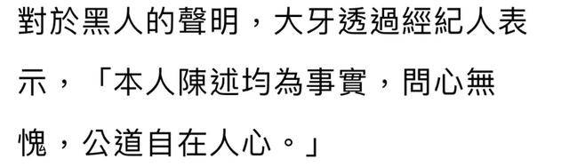 對於陳建州的回應,大牙透過經紀人再發聲,表示自己陳述的都是事實,問心無愧,公道自在人心。而她的老公阿廖師在評論區留言:“有人欺負你我壹定欺負他”。