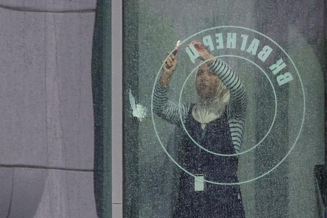壹名工人正在拆除聖彼得堡瓦格納集團大樓的窗戶上的標志。圖片來源:ANTON VAGANOV/REUTERS