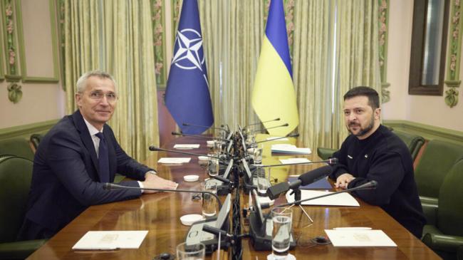 北约秘书长斯托尔滕贝格与乌克兰总统泽连斯基资料图片 © 美联社图片
