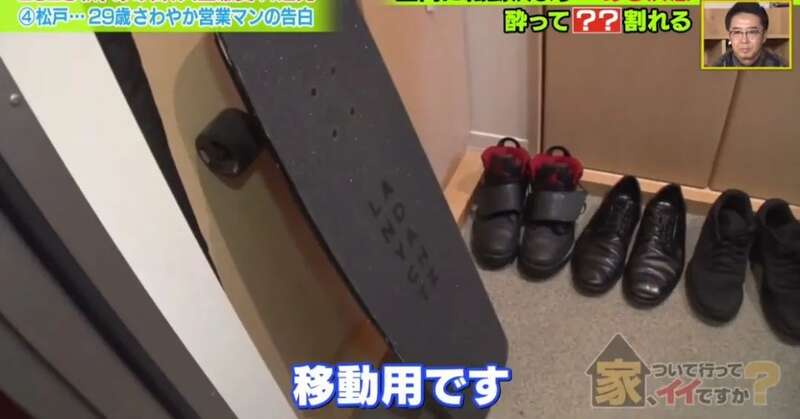 小哥名叫弘樹,是壹名在房地產公司工作的普通職員,他壹個人住在壹間兩室壹廳的公寓裡。在小哥家門口,放著壹個滑板,小哥說平時就用這個滑板來出行。