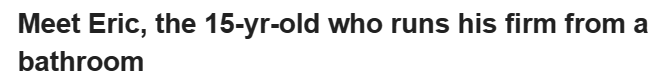 他笑著說,有壹次達成交易後,客戶關心他是否身體不適,因為對方注意到他是在馬桶上進行會議,並聽到了不斷沖水的聲音。埃裡克透露,由於頻繁往衛生間跑,他的父母接到學校投訴,對他在衛生間裡開會議的行為表示擔憂,甚至禁止他在上課期間去衛生間。對此,他已經不再介意。