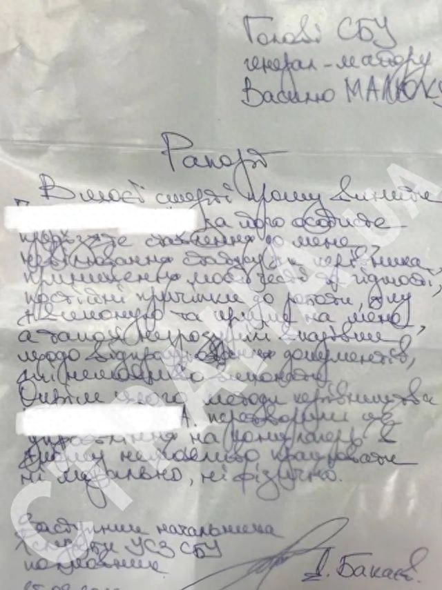 從巴卡耶夫的遺書中可見,他向烏克蘭國家安全局局長瓦西裡·馬柳克控訴自己的頂頭上司普奇科夫,稱普奇科夫羞辱了自己的榮譽與尊嚴。