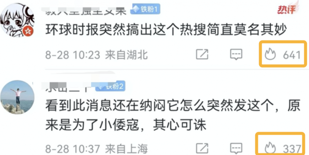 目前我翻了翻公眾號裡的文章以及微博裡的詞條,就看到不下百條指責環球網幫日本人轉移視線的消息。諷刺的是,這些指責環球網的人,恰恰就是此前在大部分社會事件、國際事件中都認同環球網觀點的那批人。