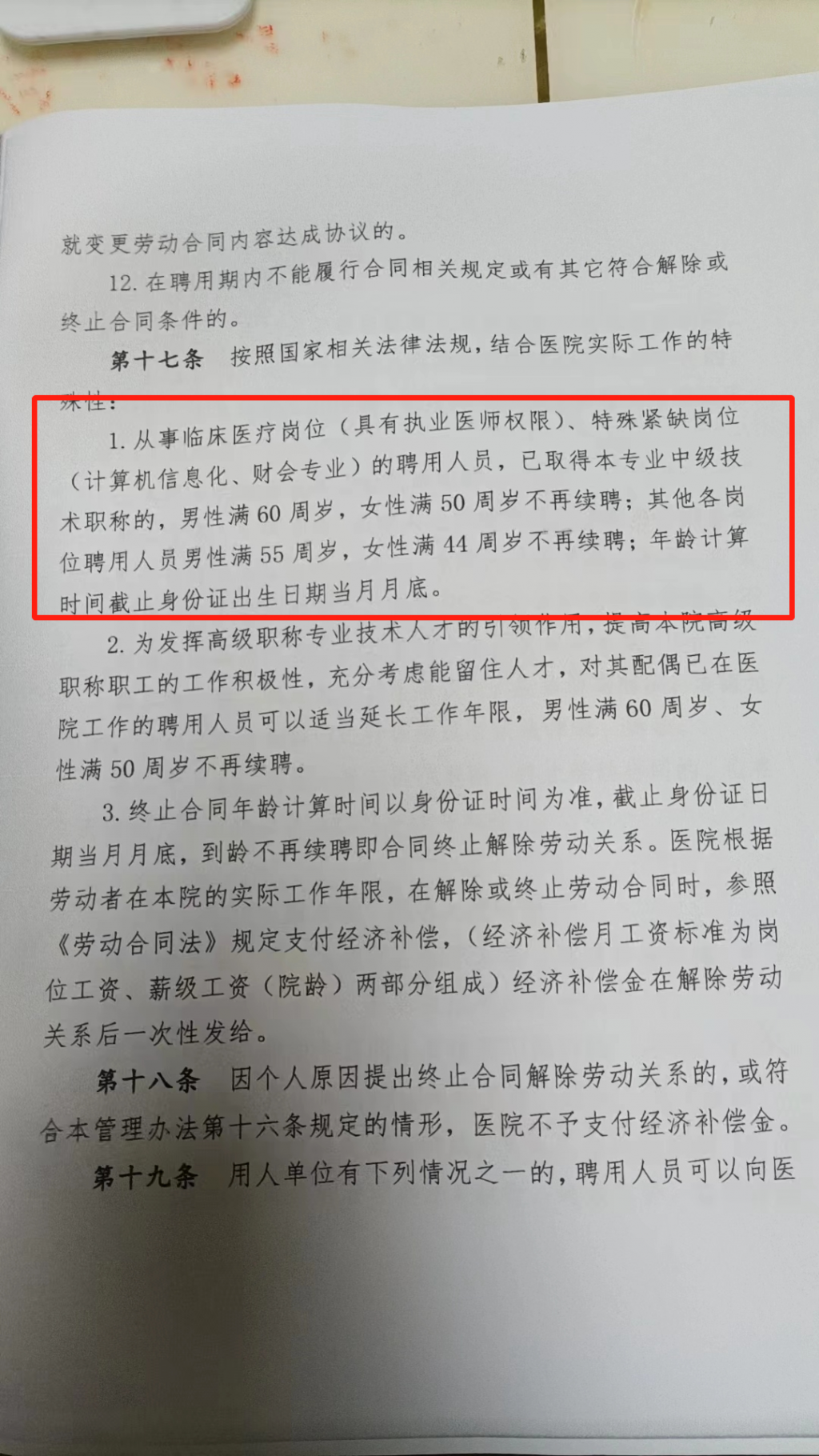 近日,陝西省旬陽市人民醫院“到齡不續聘”的消息引發關注。多名曾在該院工作的女性表示,她們在醫院工作10年以上,卻在年滿44歲時被醫院解聘,離職時,每人只拿到了1-2萬多元的經濟補償金。