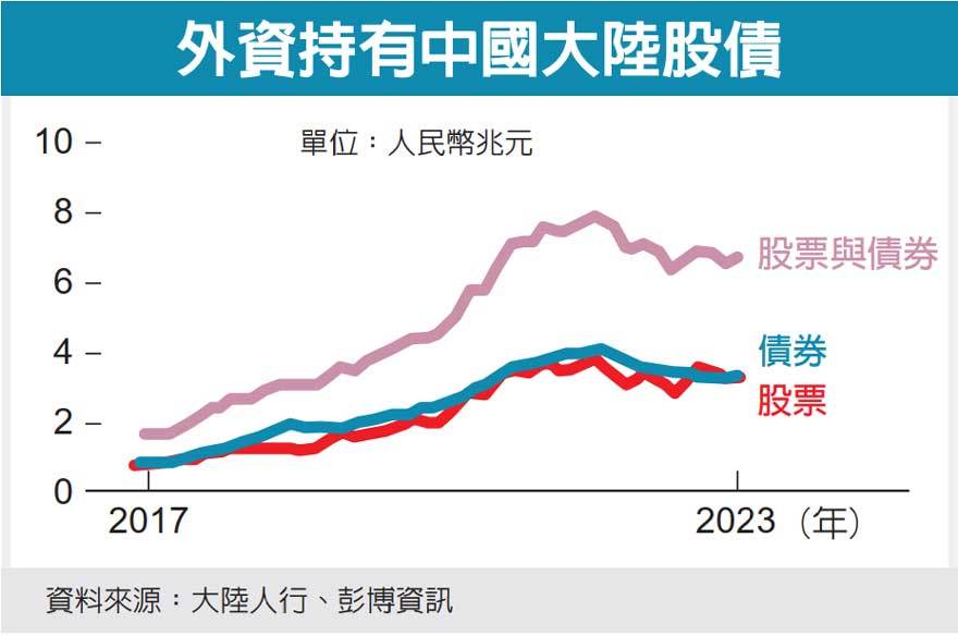 人民幣貶值,也促使外資出脫中國股債資產。由於中國經濟規模之大,且是制造業供應鏈要角,因此對許多投資機構而言,中國市場仍是投資組合的重要部分,但投資比重已下降。