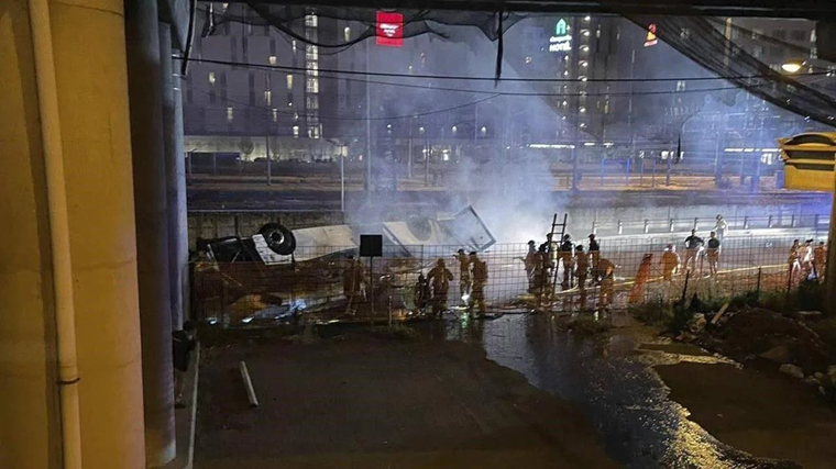 據當地媒體報道,巴士墜落幾米後,在靠近梅斯特雷鐵軌的地方墜毀,並在那裡起火。緊急救援人員已趕到現場。