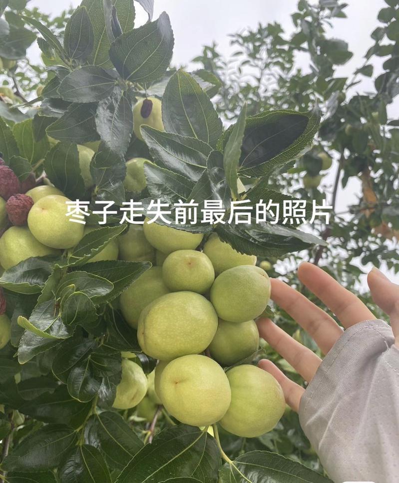 秦女士介紹說,這顆棗子原本結了很多綠色果子,有李子大小。因為果子還不是特別甜,她想過幾天再摘,卻沒想到“給別人做了嫁妝。”她說,感覺至少被摘走20磅,棗樹都變禿了。