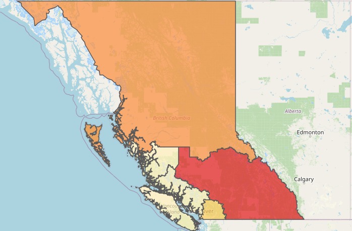 以下就是BC省疾控中心提供的氡气分布图,详情可浏览:http://www.bccdc.ca/health-info/prevention-public-health/...