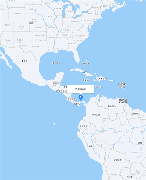 巴拿马运河划分了北美洲、南美洲,东西分别连接大西洋和太平洋: