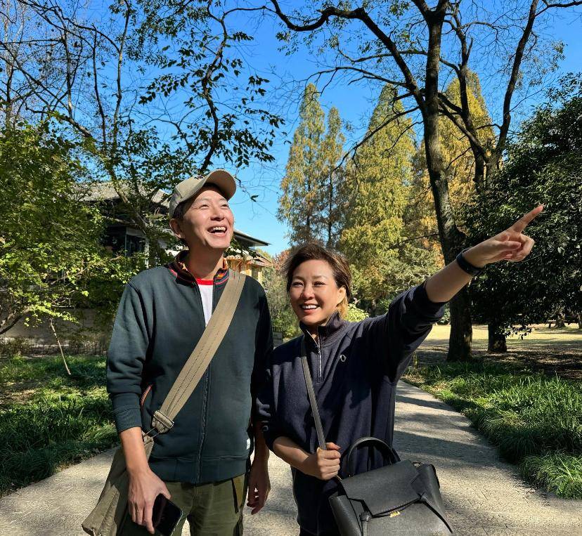 22日,李静去杭州工作,戴军便邀请她去逛植物园、品尝当地美食,两人饭后一起散步合影,氛围超惬意。