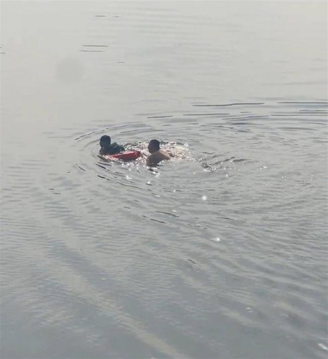 視頻顯示,壹名落水者無助地在水中掙扎,有路人撥打報警電話,壹名男子脫掉衣服從橋上壹躍而下。男子先在水中拿到救生圈,再游到落水者身邊為其套上,隨後將其救上了岸。