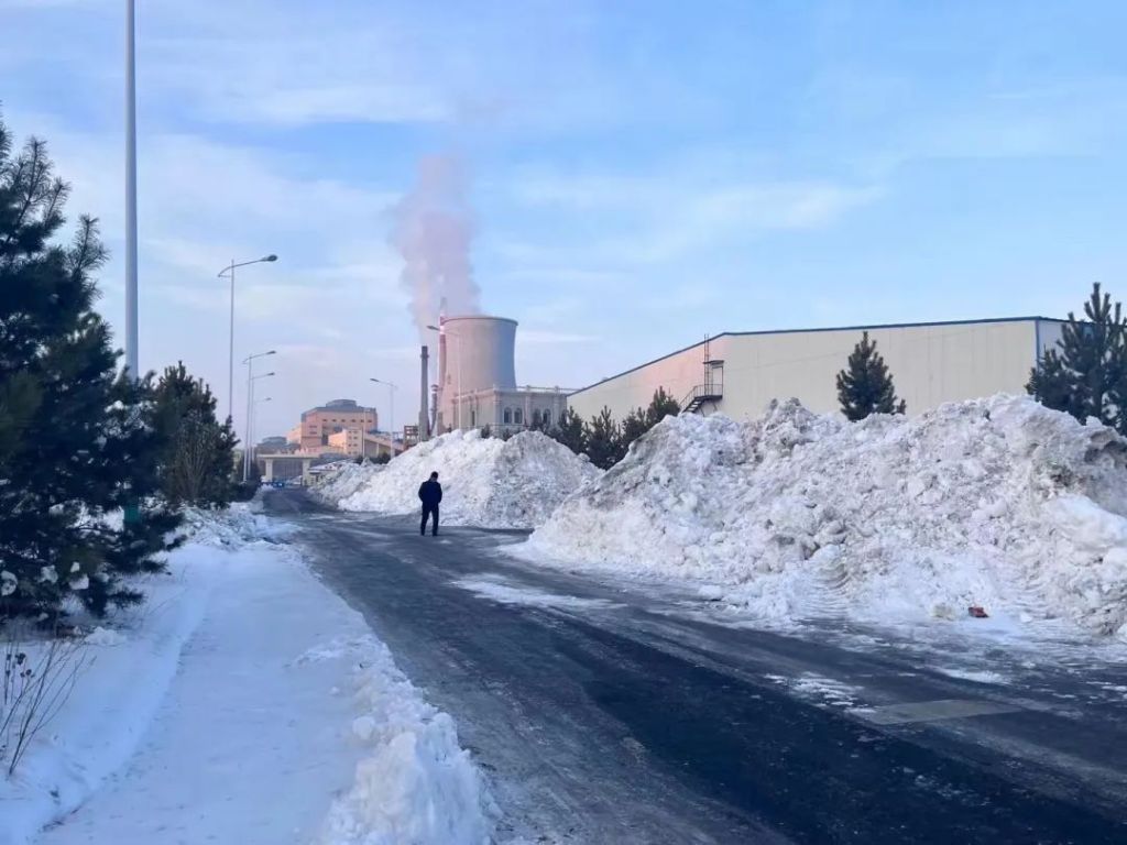 11月13日,大雪後的縣城,積雪被掃到路邊堆成了小山