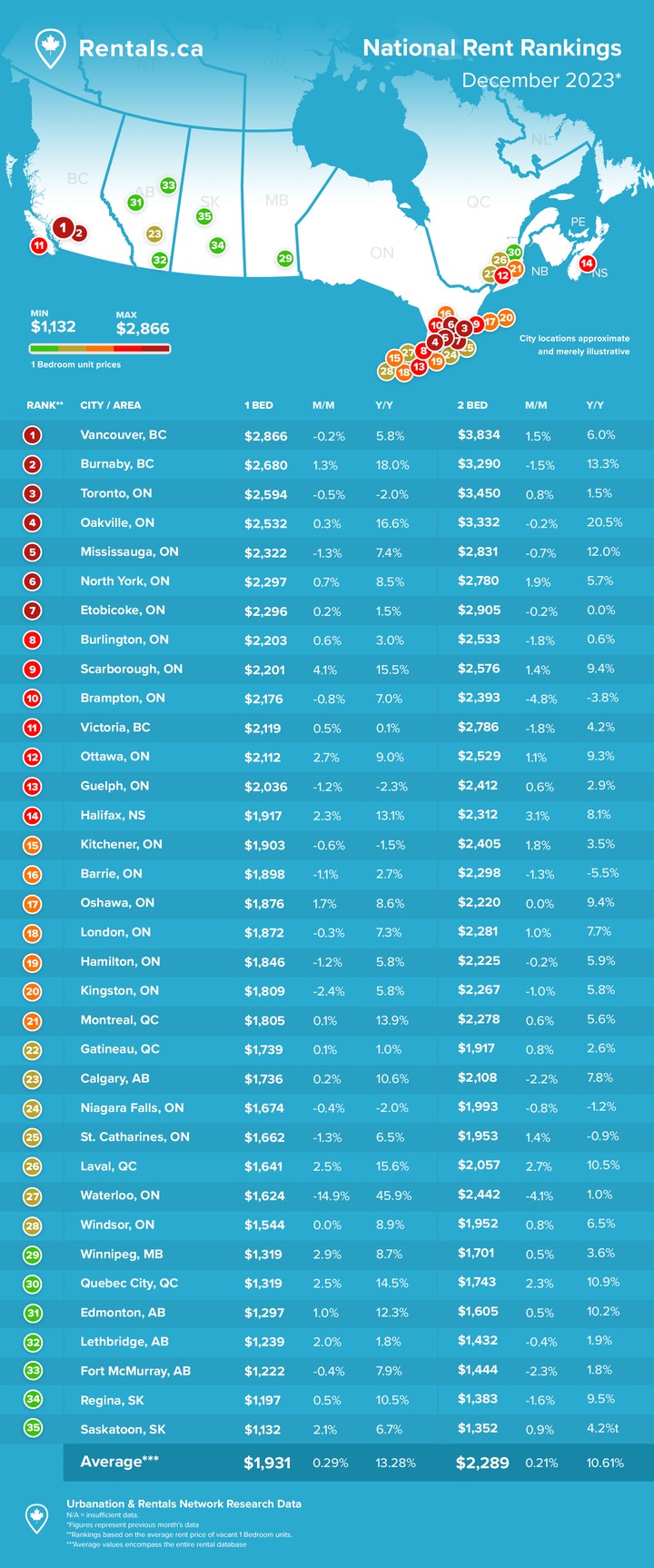 根據 Rental.ca 發布的最新租金報告,溫哥華市租金水平在 11 月出現了 0.2% 的環比下降,壹居室平均租金 2866 元,相比 10 月下降了 6 加元。