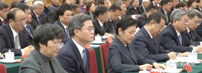 中央書記處書記,全國人大常委會、國務院、全國政協、中央軍委有關領導同志、中央黨政軍群有關部門、北京市、湖南省委負責同志,各民主黨派中央、全國工商聯負責人和無黨派人士代表在主席台下就坐。