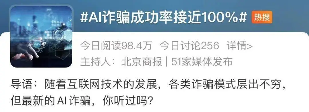 去年,AI在詐騙案頻發,“9秒被騙245萬,10分鍾被騙430萬”等詐騙案件多次登上熱搜