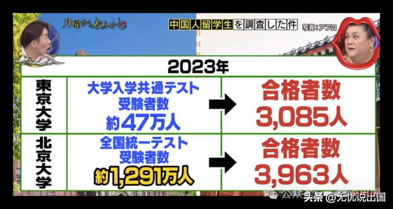 日本高考考生共47万人,东京大学招生3085人,中国高考考生共1921万人,北京大学招生3963人,两者相差21倍。
