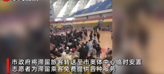 於是,當地交通局特地抽調大巴車,將滯留旅客轉運到奧體中心臨時安置,還為他們免費安排了熱水、餐食,讓大家在風雪和凍雨之中有了“避難所”。