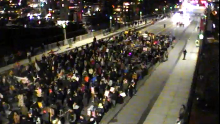 晚上7点18分,温哥华警方表示,示威者开始在Pacific Street向东游行,抗议活动在晚上8点左右结束。