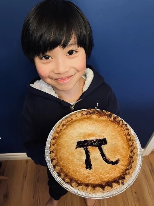 9 歲的盧卡斯.姚( Lucas Mason Yao )喜歡溫哥華加人隊、他的寵物兔子 Chomp 和 pi,在昨天 3 月 14 日,盧卡斯也和家人用蘋果派慶祝世界圓周率日。