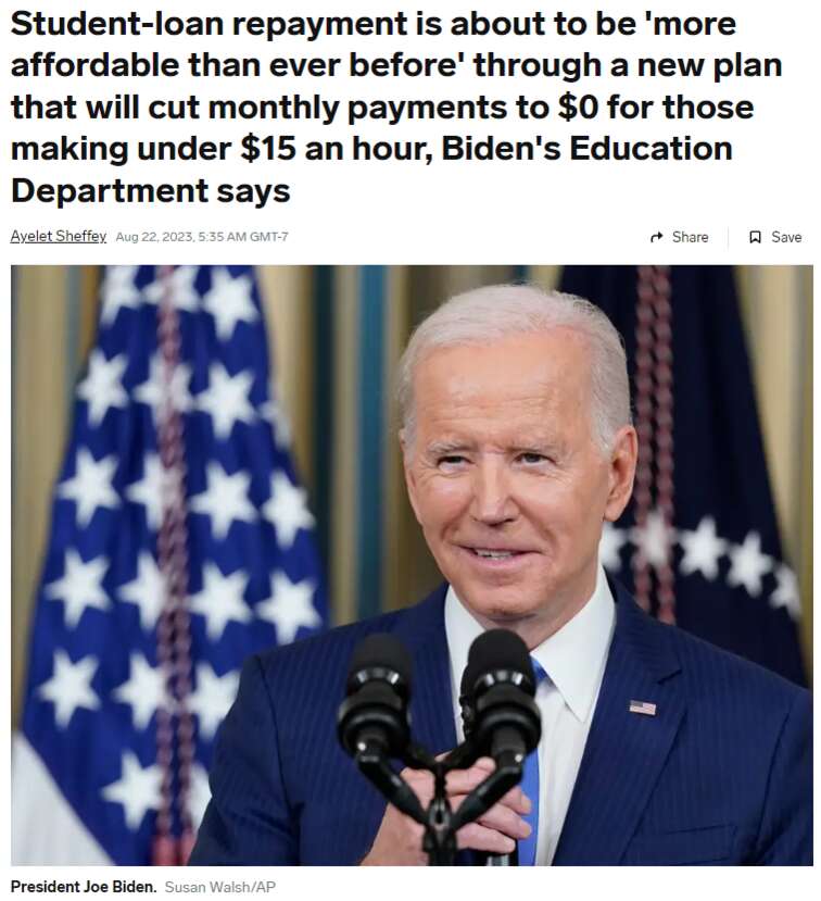 根據白宮的說法,這項利息規定將適用於所有借款人,無論其收入如何。參加收入驅動還款計劃的中低收入借款人將有資格取消自還款以來增加的全部余額——這壹群體包括收入不超過12萬美元的單身借款人和收入不超過24萬美元的已婚借款人。