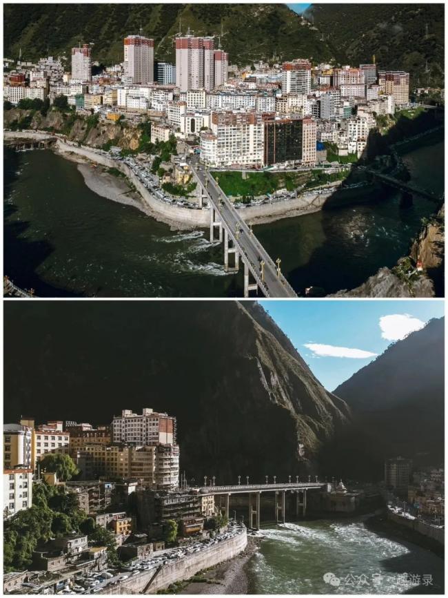 雅江县因其独特的地理位置和地形特点, 被誉为“悬崖之城”或“悬崖江城”。 四周被高山环绕。 县城建筑依山而建, 层层叠叠,错落有致, 与重庆的立体城市风貌颇为相似, 因此得名“藏区小重庆”。 在这里,你可以看到房屋依山势而建, 街道蜿蜒曲折, 仿佛置身于一座天然的山城之中。