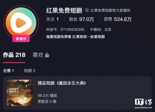 IT之家 1 月 27 日消息,抖音集团副总裁李亮昨日发文分享了对短剧的个人观点,其中提到,短剧当下的问题是缺乏精品。精品是短剧的必经之路,红果短剧会在 25 年大力发展精品短剧。