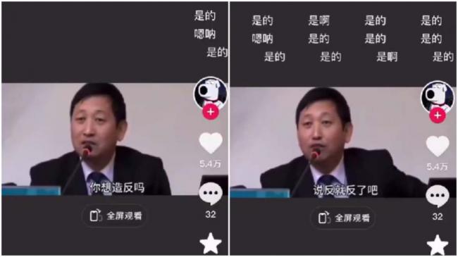 抖音视频中出现台词“你想造反吗”,大批中国网民用弹幕回答“是的”。