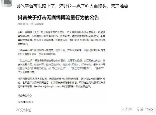 再一看,他们都在转发来自抖音平台的一则公告:关于打击无底线搏流量行为的公告。