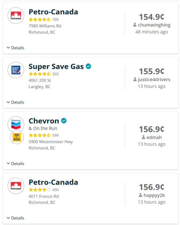 大温地区的油价目前徘徊在每升 1.60加元左右,一些加油站可以看到更低的价格。