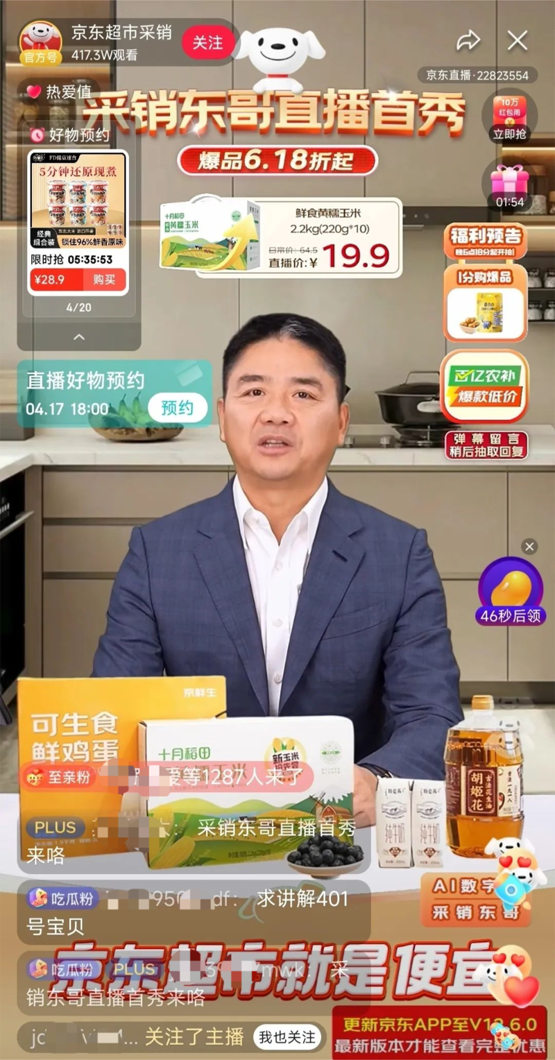再往前,去年4月,刘强东的AI数字人“采销东哥”亮相京东采销直播间,开启带货首秀。刚上播30分钟,观看人数就突破千万大关;不到1小时,直播间观看量超过2000万,整场直播累计成交额超5000万元。
