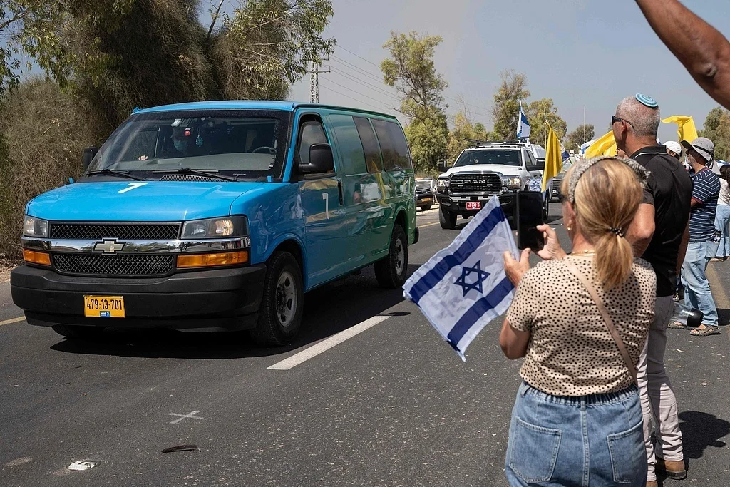 当地时间2025年10月13日,以色列南部,靠近加沙边境的雷姆军事基地外,以色列民众手持国旗聚集,迎接哈马斯从加沙地带释放的被扣押人员。视觉中国 图