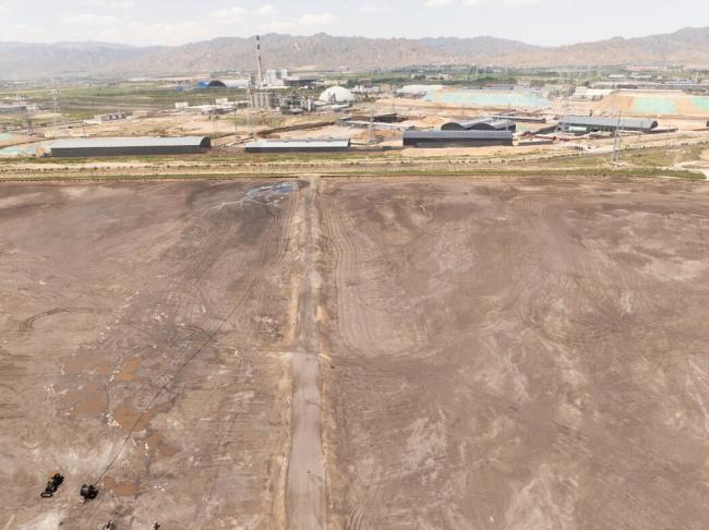 中国包头市,一个因稀土开采而枯竭的湖泊,湖中堆积着开采稀土后剩余的矿渣。背景中可见稀土精炼厂、钢铁厂和化工厂。 The New York Times