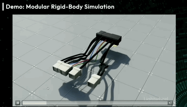 为了让机器人学习如何操作电缆,光轮智能与Newton及英伟达合作,为电缆构建求解器,并研发仿真就绪资产来构建这种仿真。