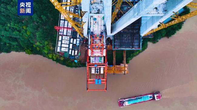 渝萬高鐵石沱長江大橋首節鋼梁成功架設,工程進入關鍵階段。完工後將創下肆項世界第壹,包括世界最高雙聯主塔與最大公鐵合建斜拉橋。 圖:翻攝自央視新聞
