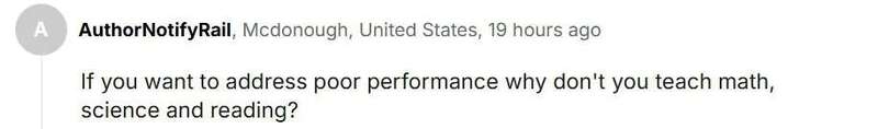 “如果你们想解决成绩不好的问题,为啥不多教教数学、科学和阅读呢?”