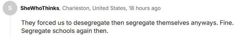 “他们逼我们取消种族隔离,然后自己开始了隔离。好吧。学校里又实行种族隔离了。”