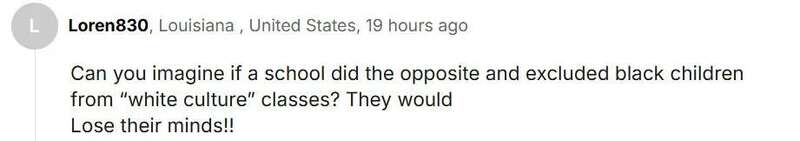 “你能想象,如果一所学校反过来,把黑人孩子排除在‘白人文化’课之外会怎样吗?他们疯了吧!”