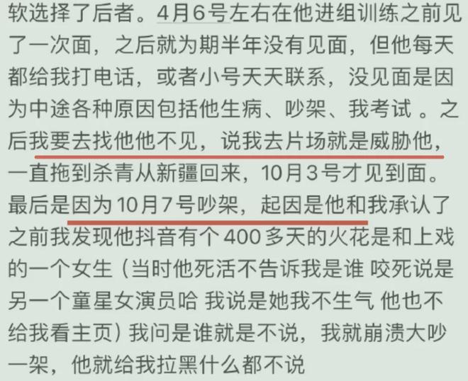 10月7日,他再度被李禹熹发现和其他女生有暧昧痕迹。