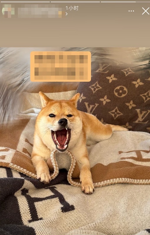 楊蘭蘭的柴犬使用Celine頸圈、LV枕頭與愛馬仕毛毯。(《每日郵報》)