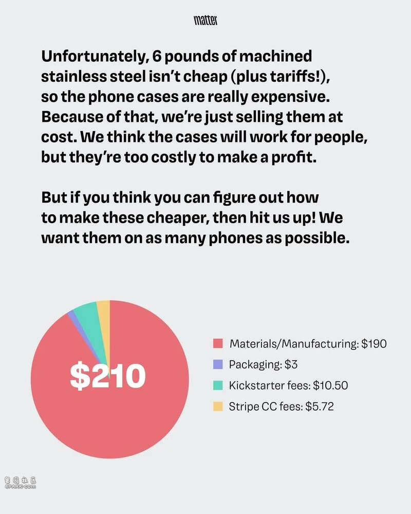 于是艾维发起了众筹,起价209.15美元,折合人民币(专题)约1500元,这价格甚至比无数人吐槽的苹果正品手机壳都要贵得多。