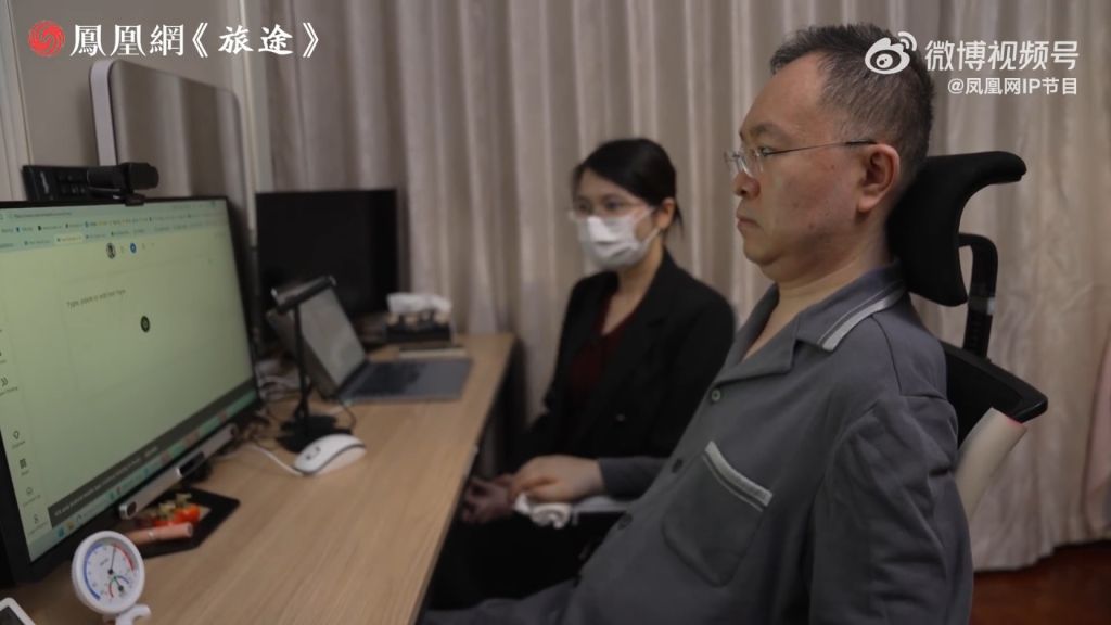 蔡磊能靠眼控仪打字交流。(视频截图)