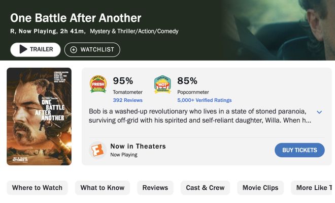 换一个角度看,这部电影应该叫“革命不停”。这部导演PTA(保罗·托马斯·安德森)目前最主流商业的电影,就是马丁·斯科塞斯那句“absolute cinema”的最好概括。