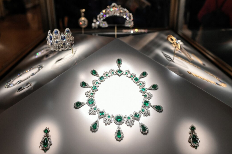 本次卢浮宫总共被偷走了八件珍贵珠宝,包括一顶皇家蓝宝石冠冕和一套皇家祖母绿项链配耳环,业内人士估计这些失窃物品总价高达8800万欧元,约7.2亿人民币(专题),堪称天价。