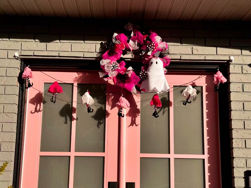 就连后院的杂物房的门口都是万圣节经典电影《月光光心慌慌》(Halloween)的戴着面具、冷血无情的杀人狂迈克尔·迈尔斯 (Michael Myers) 的画像,你说惊不惊!