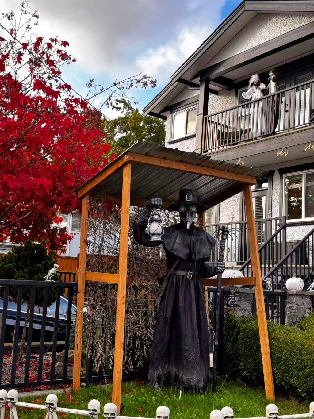 (加西网综合)明天就是孩子们最爱的“不给糖就捣乱”的万圣节,大温地区各家各户的万圣节装饰已经早早登场~~