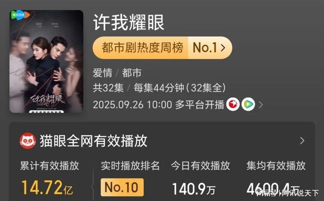 由赵露思、陈伟霆领衔主演,9月26日多平台开播的《许我耀眼》,讲述了从小由外婆抚养的许妍凭借主持人身份和包装身世与富家子沈皓明结婚,之后经历婚姻破裂又相互撕掉伪装重新靠近的故事。