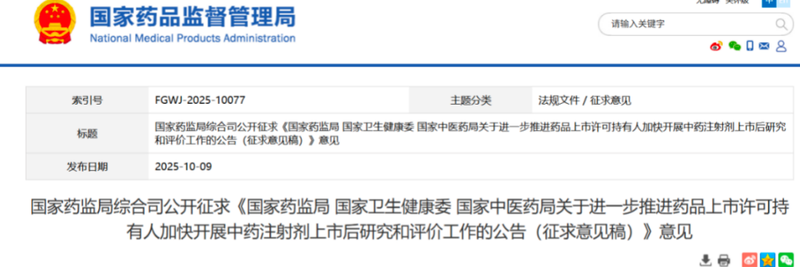 近日,国家药监局、国家卫健委与国家中医药局三部门联合发出“最严监管令”,宣布对所有在2019年《药品管理法》实施前上市的中药注射液,一律重新评价,不交出安全性和有效性数据,就退市。