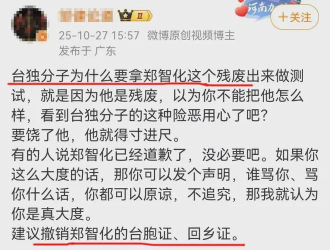 然后,就因为郑智化吐槽了一座机场的无障碍设施,一群所谓的“正能量”大V,就像非洲草原上的鬣狗一样,闻着味就来了,上纲上线的各种“撕咬”,甚至有大V呼吁撤销郑智化的台胞证、回乡证。