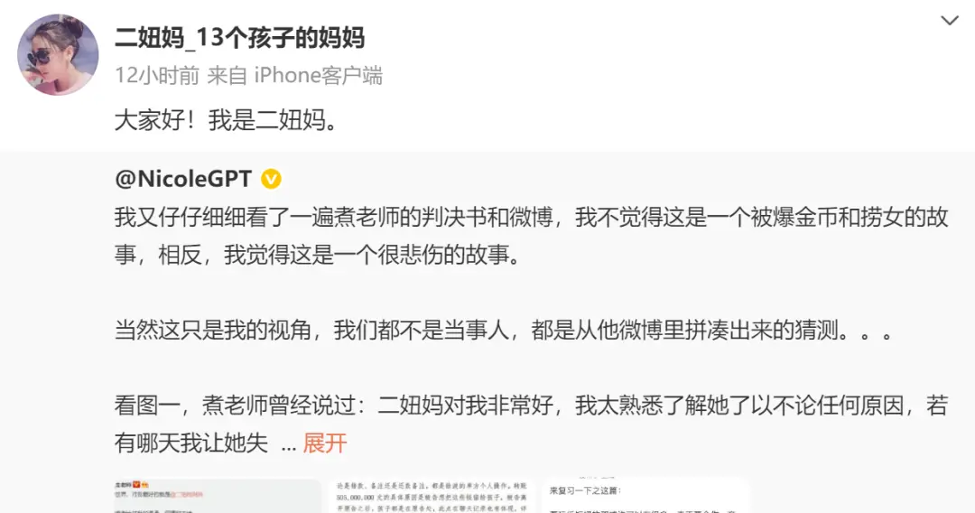 “二妞妈-13个孩子的妈妈”出现在了微博。